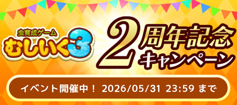 「虫育成ゲーム むしいく3」2周年記念イベント開催中!